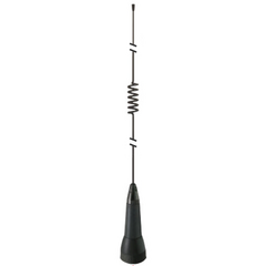 E/M Wave VHF Poly Spring 2 dBi gain, ground plane independent, NMO mount with o-ring seals for waterproof construction. Black chrome finish, IP-67 rated. Similar to the Antenna Specialists mosaic coil design and the PCTEL MHBDC5800 no ground plane required antenna.