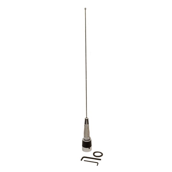 PCTEL - VHF 136-174 MHz wideband chrome base loaded antenna with spring. No tuning required.