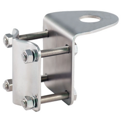 E/M Wave stainless steel mounting bracket for base station installations. Compatible with mirrors and pole mounts. Has a 5/8" hole in right angle base.