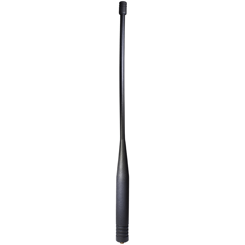 EM-P90918-SF - Molded flexible 1/4 wave portable antenna, SF connector, Unity Gain, Broad Band VHF, 150-174 MHz, for Motorola APX Series