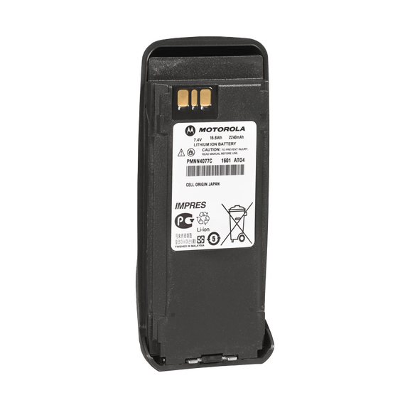 Compatible with XPR6550 - MOTOTRBO IMPRES 2400 mAh ruggedized battery. Replaces the PMNN4077C and PMNN4077D (previous versions).