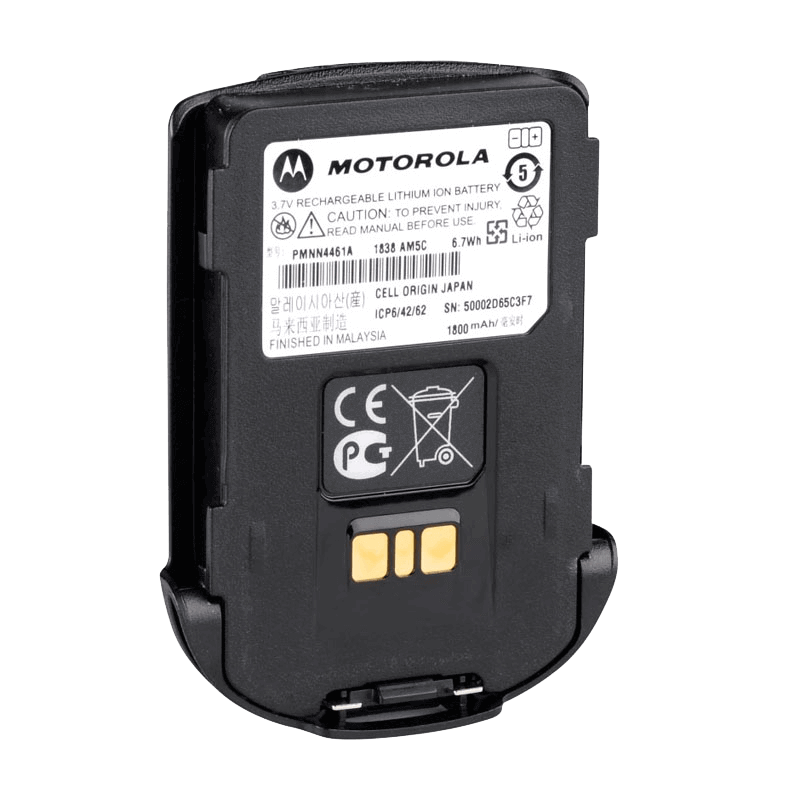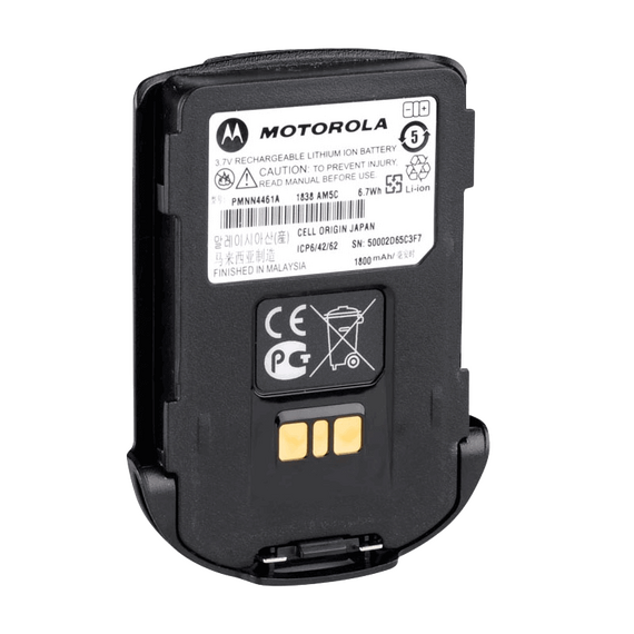 1800 mAh Li-Ion battery for RLN6544 and RLN6561 wireless speaker microphone.
