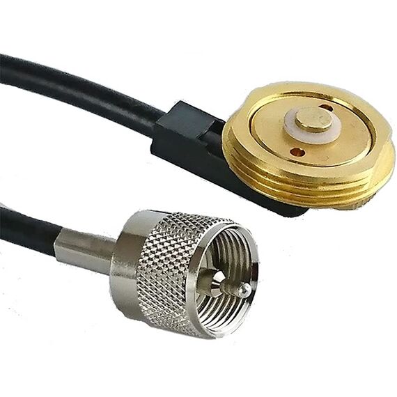 Laird Technologies MB8UPI features 17' of RG-58U solid center coaxial cable, 3/4" NMO mount and a PL-259 crimp connector installed.