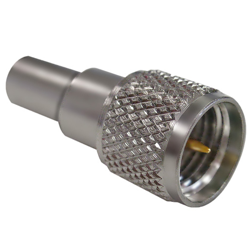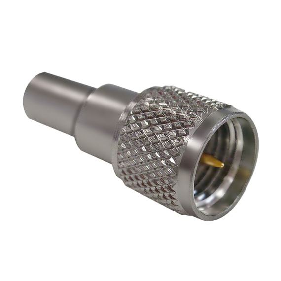 E/M Wave Mini-UHF male nickel plated crimp connector for RG-58 and LMR195.