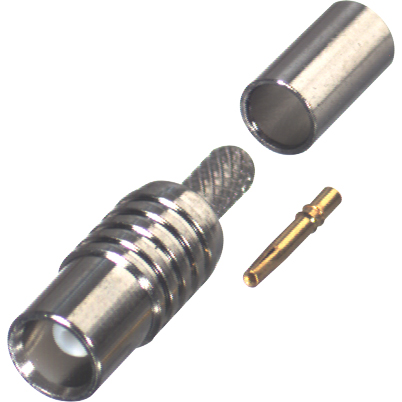 MCX (F) nickel plated crimp connector for RG-174 cable with teflon dielectric.