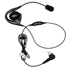 D-style earpieces allow users to receive communication discreetly. The earpiece fits comfortably and securely around the ear for extended use. This earpiece also features an in-line microphone and push-to-talk.