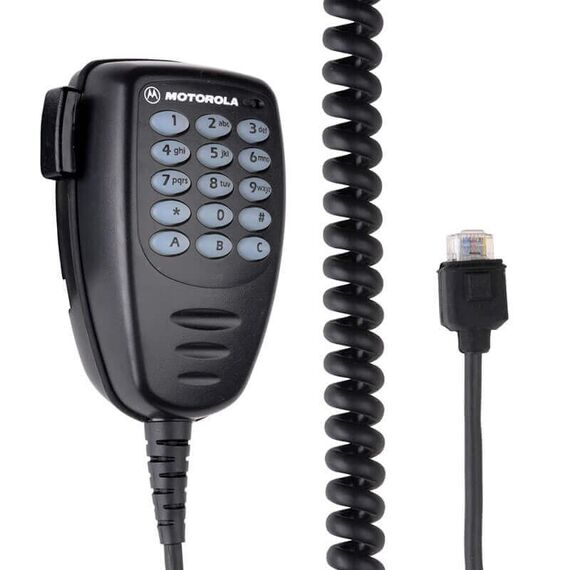 The enhanced keypad microphone has a 7 foot coiled cord with hang-up clip. It features a backlit 12-digit DTMF keypad that generates the standard tones needed to access telephone communication systems through a repeater equipped with telephone interconnect.