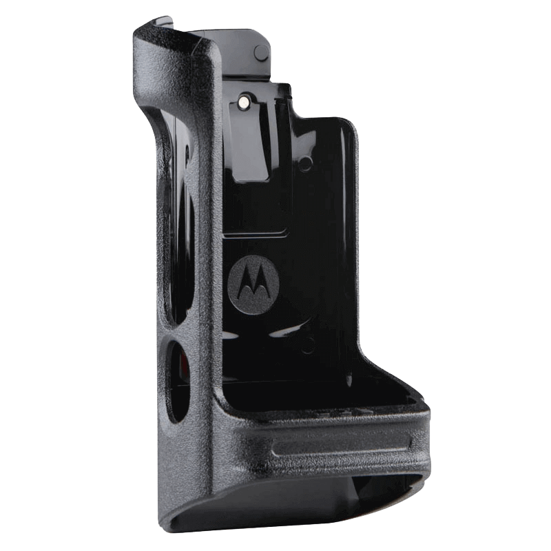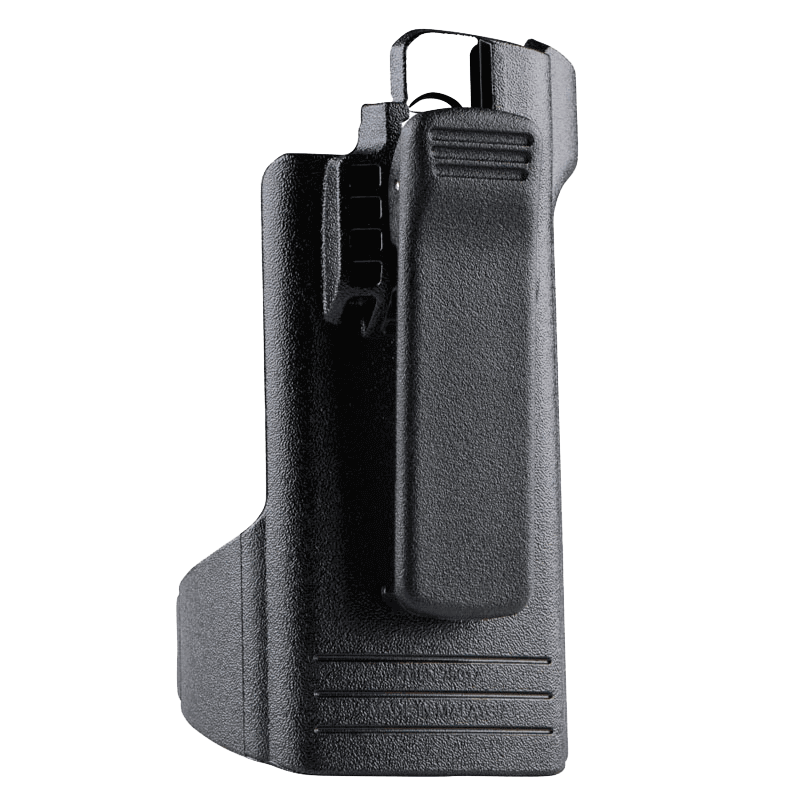 Hard plastic case includes belt clip and is designed to protect large display by facing it inward.
