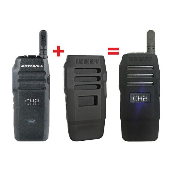 Silicone radio grip for TLK100. Provides use of accessory jack, display and channel/talk group toggle switch and belt clip. Supplied holster is NOT compatible when using this case. The PMLN7128A belt clip should be used.
