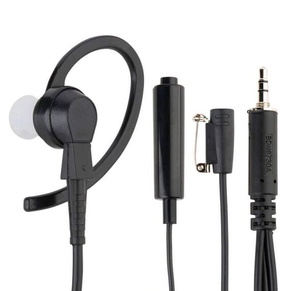 This earpiece allows the radio user to privately receive messages and is ideal when environments require discreet communication. This black, 3-wire earpiece has a separate microphone and Push-to-Talk feature, and it's intrinsically safe. It requires a 3.5mm threaded audio adapter, unless being used with a speaker microphone.