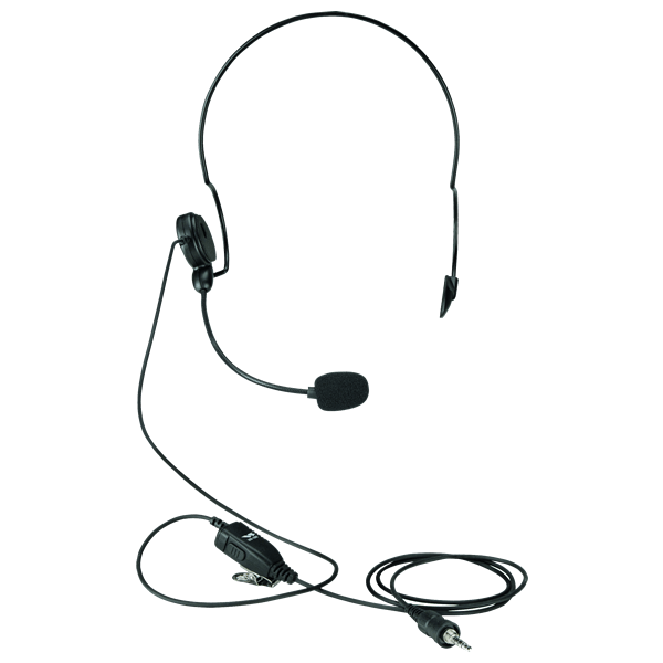 This headset fits behind the head and allows the user to operate the radio using VOX (Voice Operated eXchange) for hands free operation. Hear the incoming audio through the ear piece. Respond via voice using the VOX feature and the boom microphone. The operator also has the ability to turn the VOX off and operate the radio using the Push-to-Talk (PTT).