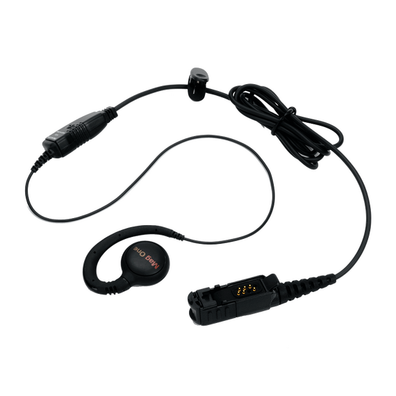 Mag One accessories are the only value-line of audio accessories tested and certified by Motorola and offer greater affordability and solid performance. These accessories do not meet the same level of specifications as our Motorola Original accessories. This Mag One swivel earpiece fits flexibly around the ear and features a combined microphone and push-to-talk on a single wire.