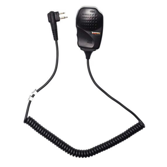 The Remote Speaker Microphone is a water-resistant compact unit that allows talking and listening without removing the radio from the belt or case. It has a coiled cord, Push-to-Talk switch. Clothing clip on microphone back clips securely onto shirt or collar.
