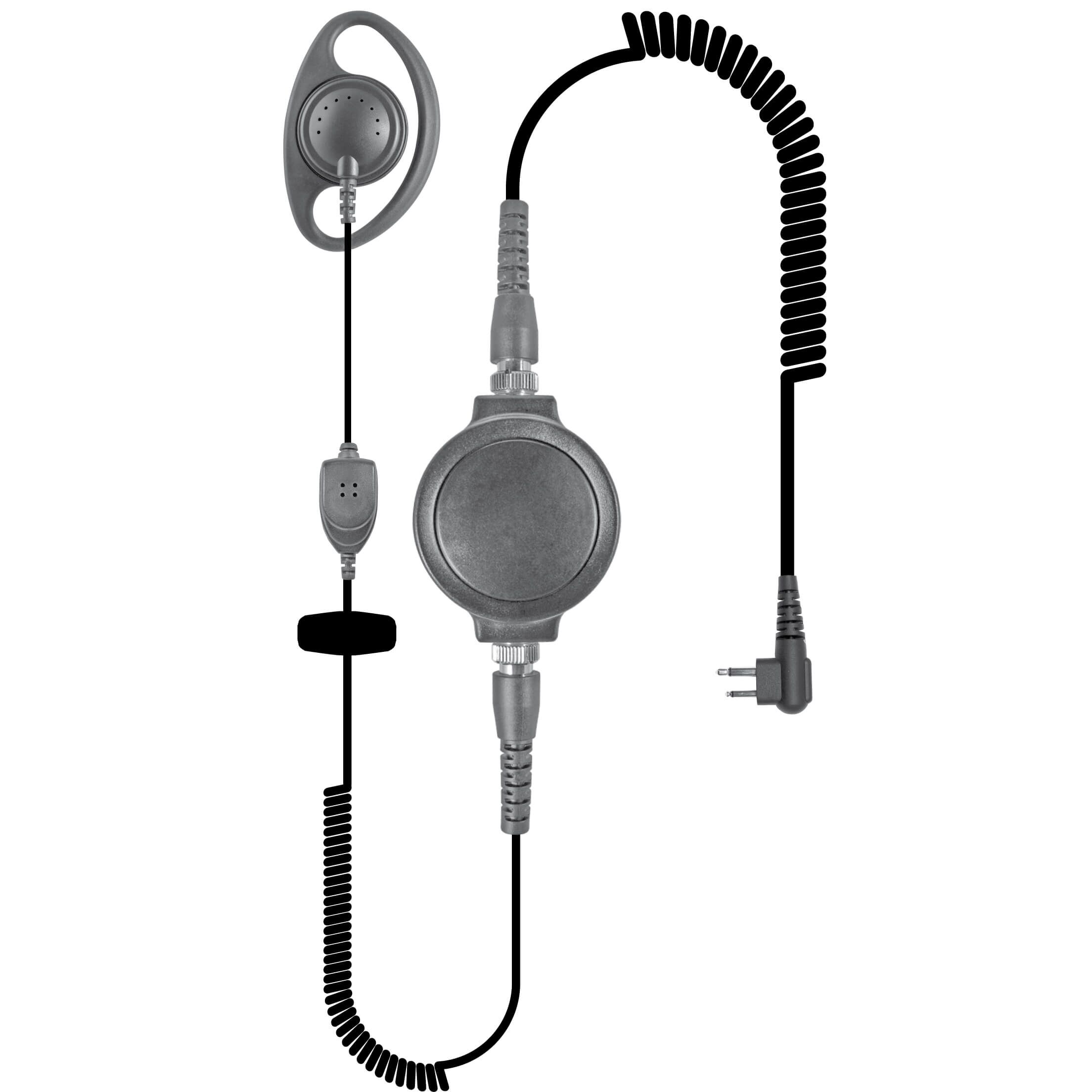 DEFENDER Series Single Wire TACTICAL KITS with D shape Earpiece and replaceable Radio Cable. Kit comes standard with PTT-1500B (Hockey Puck) PTT but can be upgraded ($35 list) to Belt-mount junction box and Finger PTT.