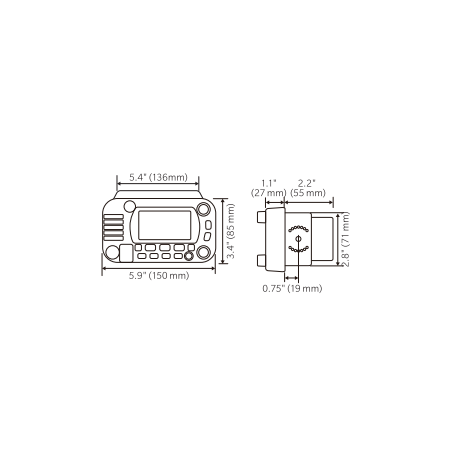 Mounting a VHF radio has never been easier. The Explorer Series VHF's have an ultra thin, compact rear case, only 3.3” in depth or half the depth of comparable VHF radios on the market. The rear case design also gives flexibility when flush mounting the radio in tight areas or bracket mounting the radio by taking up less dash space, and allowing more mounting options.